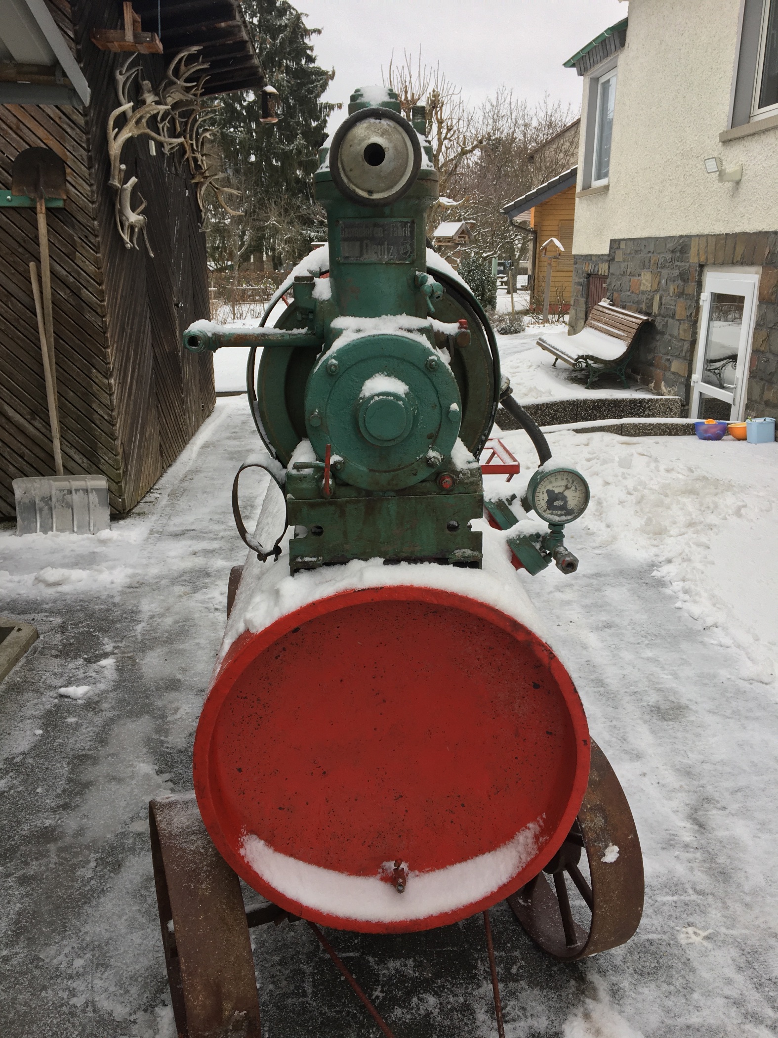 ich konnte einen Kompressor der Gasmotorenfabrik Deutz erwerben. 8-) Nun suche ich dazu weitere Informationen. Interessant wäre zu wissen wie die fehlende Leerlaufscheibe aussehen muss. Gerne Bilder. Durchmesser 40cm, Nabendurchmesser beträgt 57mm. Vielleicht hat jemand sogar etwas vergleichbares, was ich anpassen könnte. ;)