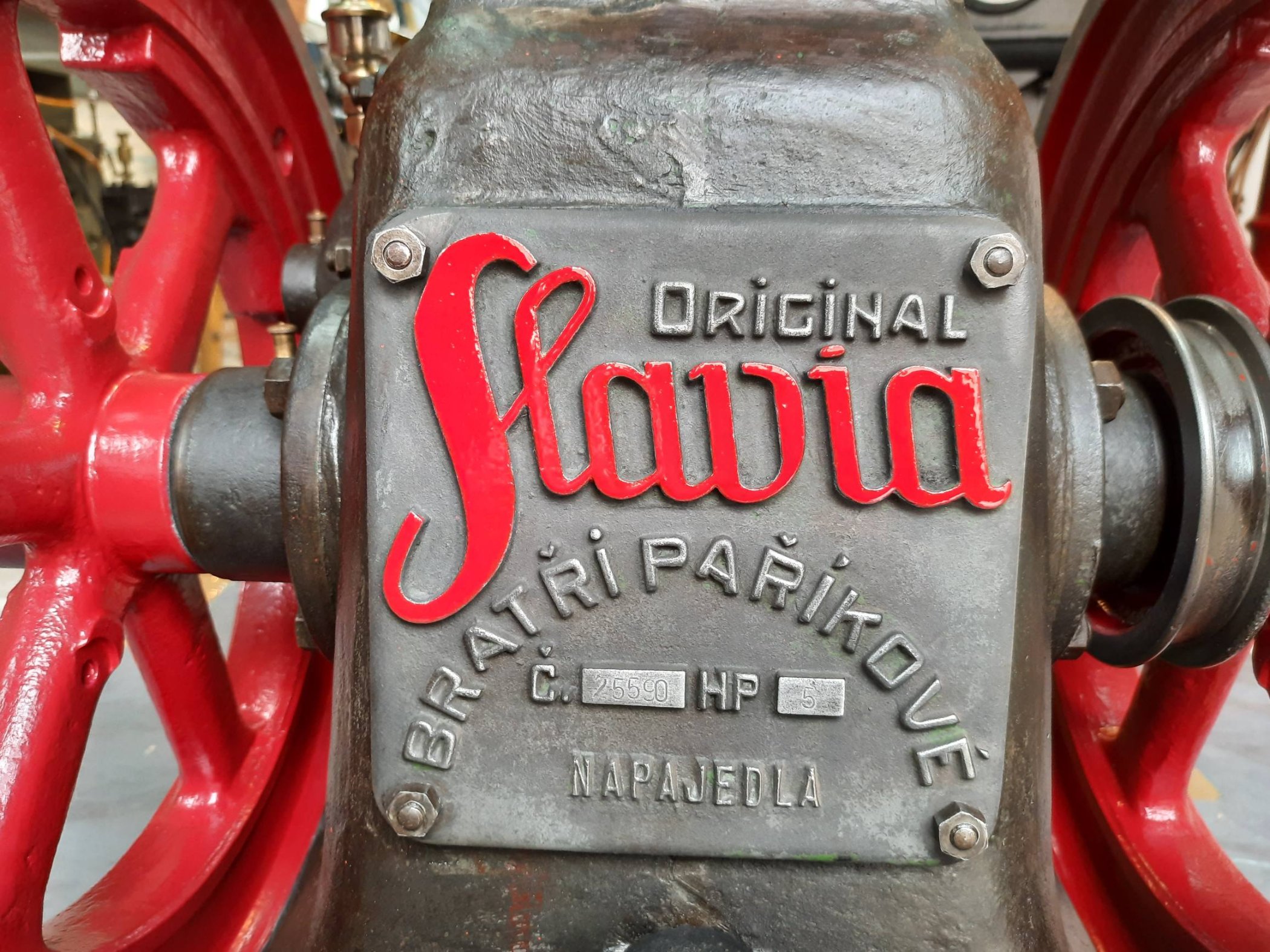 PS: Ich habe bis jetzt nur die Speichen der Schwungräder neu in rot gestrichen. Der Rest soll so bleiben. Der Motor war mal grün.