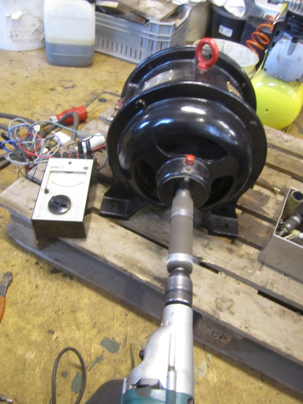 Leider müssen die Bronze Lager erneuert werden. Und das Klemmbret ist eine Schraube abgebrochen. sonst ist er Optisch und Elektrisch im super zustand er hat auf 3 Phase 220 Volt und je Phase 110 Volt. Er erzeugt schon bei geringer Drehzahl nutzbare 90 Volt.