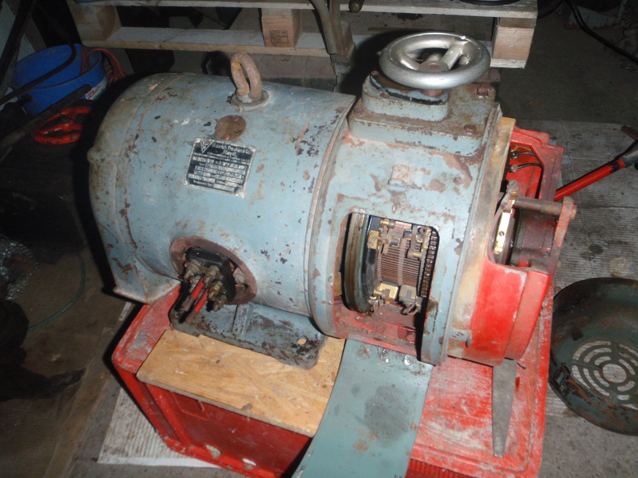 das ist doch ein schöner Motor. Der ist drehzahlverstellbar und kann auch unter Last hochfahren. Solche Motoren waren früher z. B. bei Bosch-Lichtmaschinenprüfständen gebräuchlich, Frequenzumrichter waren damals sehr aufwendig und viel zu teuer. Die Bürsten werden mit dem Handrad verstellt. Der Anker ist nicht mit dem Ständer verbunden.