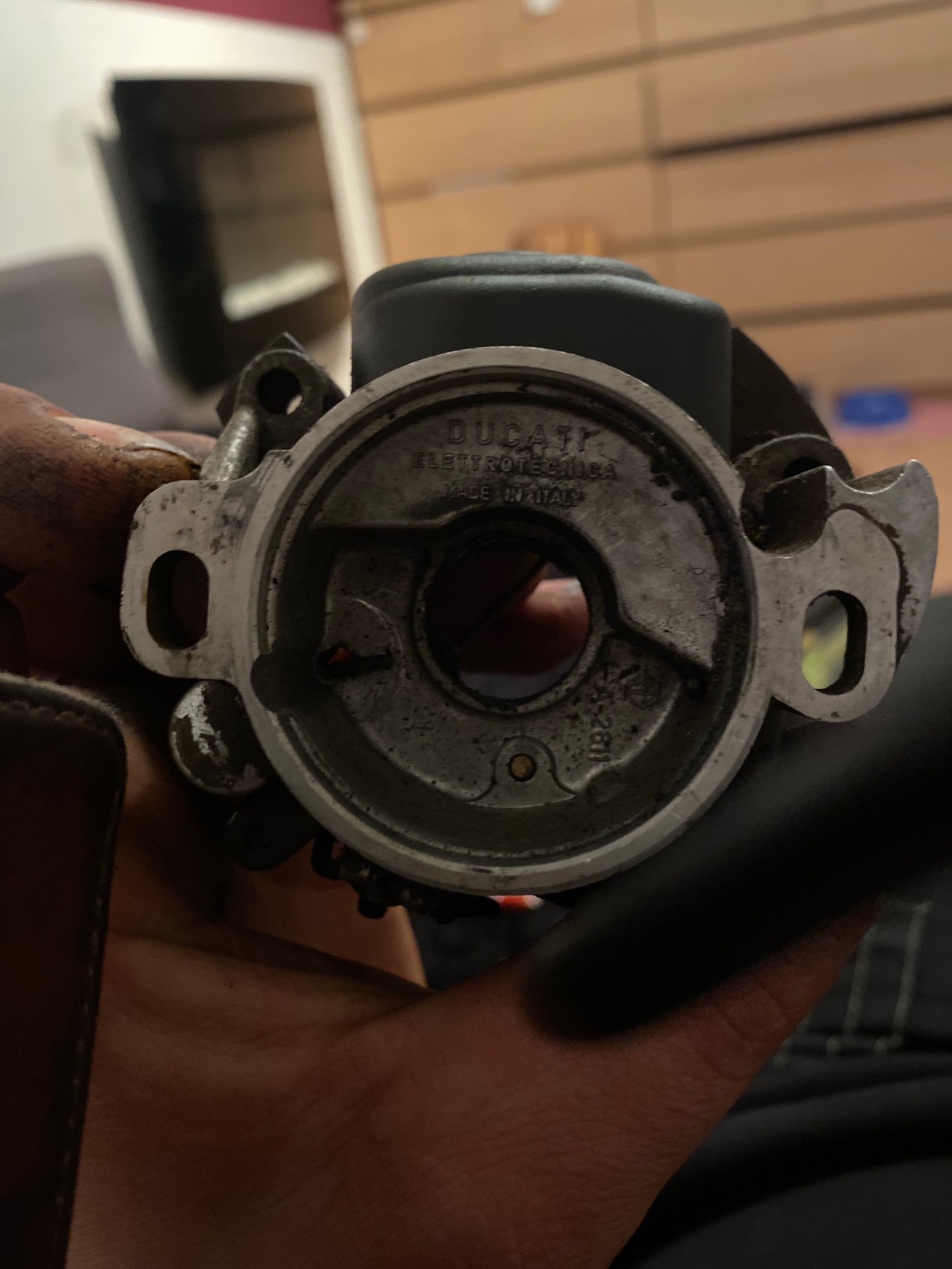 Das ist eine Ducati-Zündung, Teile sind sehr schwer zu bekommen, lediglich der Kondensator ist ein Standardteil.