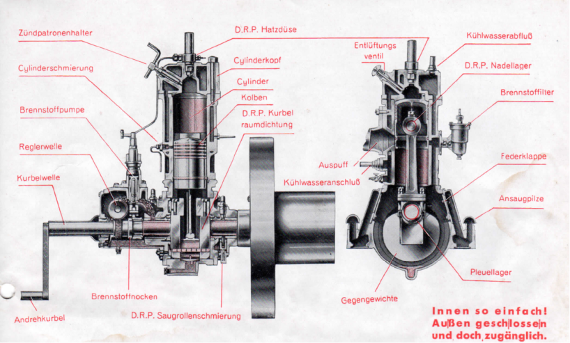Bauart : Stehender Einzylinder Zweitakt-Dieselmotor